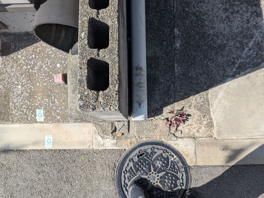 メジャーを当てにくい状況だったので、レーザー距離計で建物の寸法を簡易的に測定したのですが、法務局の図面の方が正しかったようです。